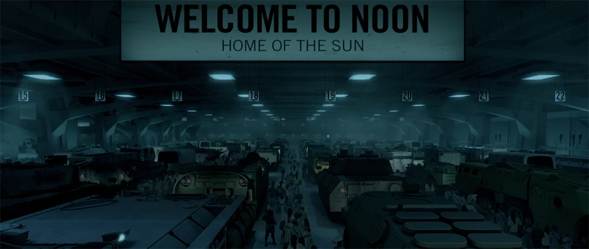 "Noon" the feature film, is a science fiction story about a soul-deadened coyote who reluctantly guides a band of rebels on journey to take control of water and energy on a future Earth where the Sun has stopped moving in the sky